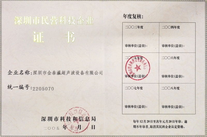 金泰瀛-深圳品牌企業(yè)證書